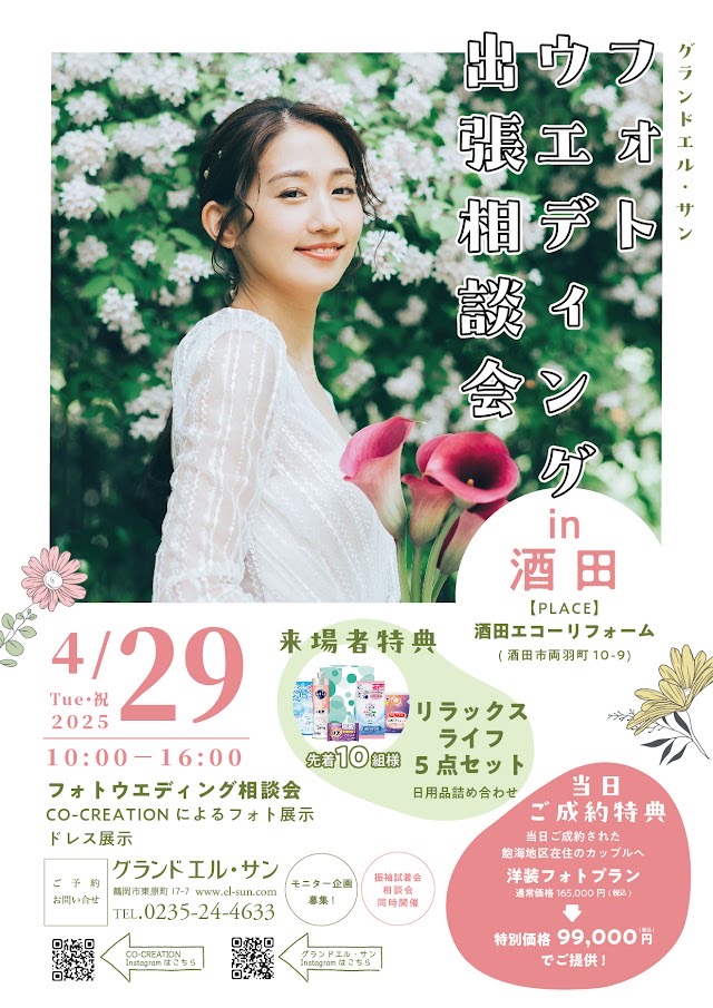 4月29日(火・祝) フォトウエディング出張相談会in酒田