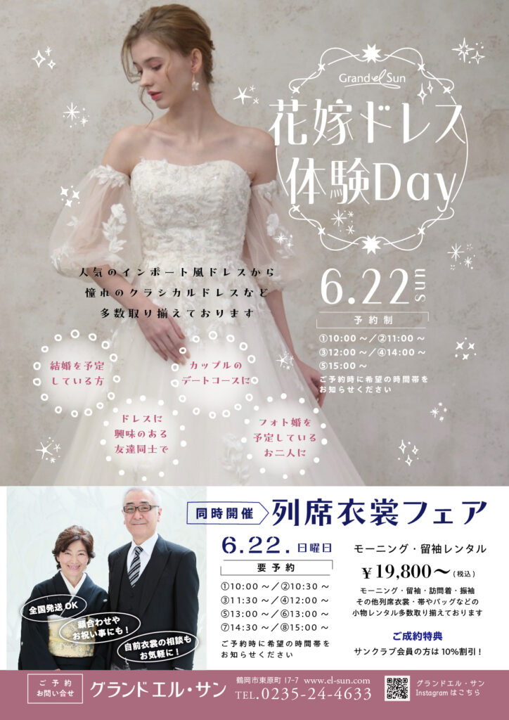 6月22日(日)花嫁ドレス体験Day&列席衣裳フェア