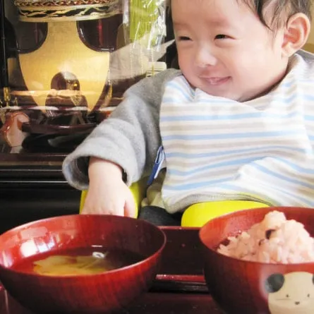 生後100~120日頃に健やかな成長を願ってお祝いの料理を食べさせる真似をする、日本古来の伝統行事です。生後100日の節目を迎えられたことを神様に感謝し、わが子の成長を祝うと共に「一生食べ物に困らないように」と願いを込めて行う儀式となります。