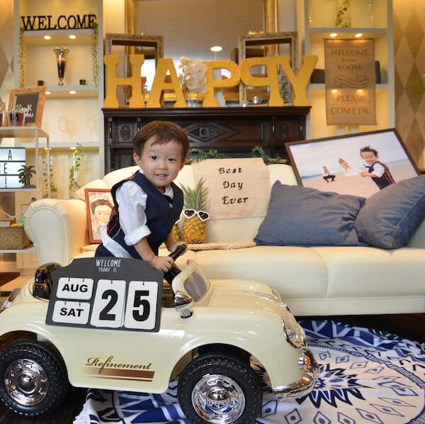 ~こだわりのウェルカムスペース~ わが子は車に乗ってポーズ