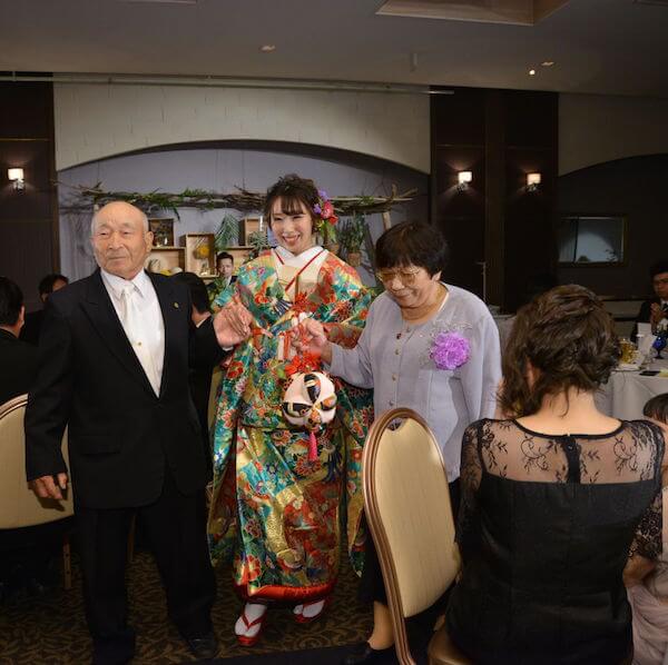 大好きなおじいいちゃん、おばあちゃんと手をつないで退場
