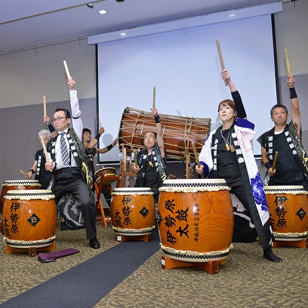 鶴岡の天神祭でも披露している“伊勢原太鼓”新郎父と仲間が盛り上げてくれました
