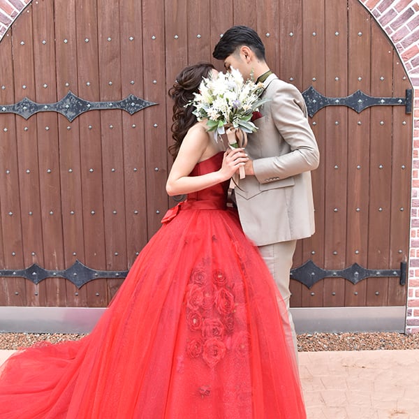ウェディングブーケに隠れたキスショット。海外っぽくて素敵♡