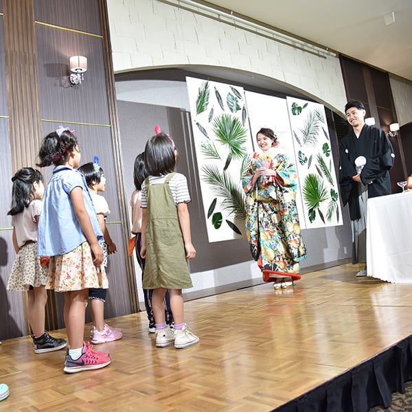 新婦さんの職場の子どもたちがサプライズでお祝いに駆けつけてくれました