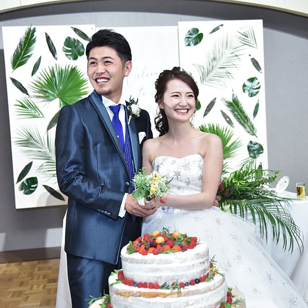 笑顔がとても素敵なお二人。シャッターチャンスのケーキ入刀はゲストも笑みがこぼれる演出です