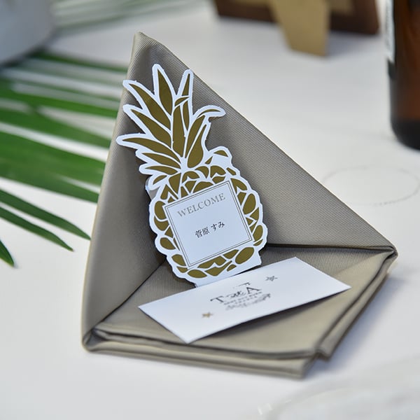 パイナップル席札をはじめ、ペーパーアイテムは全てDIYで頑張りました