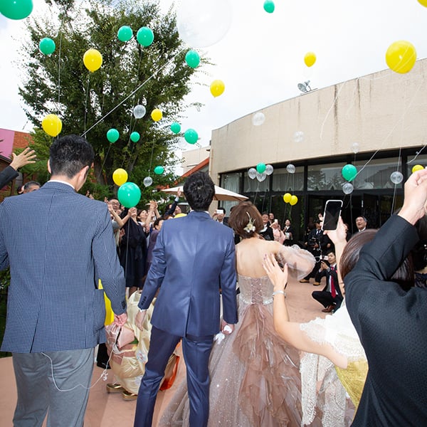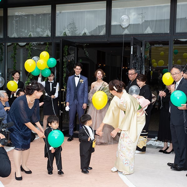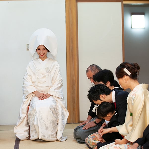 新婦手づくりの折り鶴をゲストに折り鶴シャワーをしてもらい和装入場