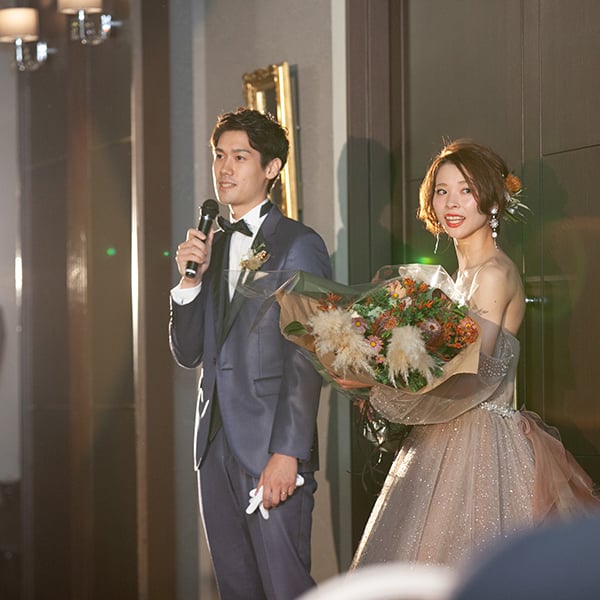 新郎から新婦へサプライズの手紙と花束をプレゼント