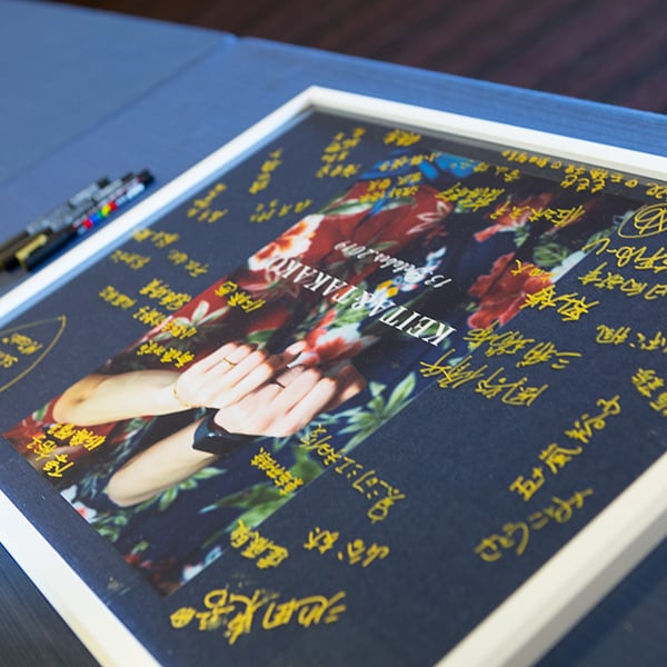ウェルカムスペースにはゲストからメッセージをもらい、完成したウェルカムボード