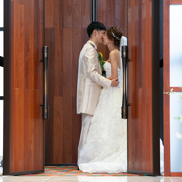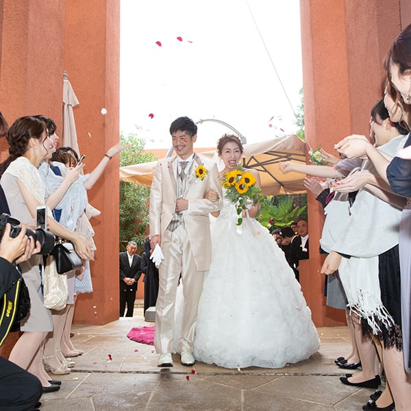 ゲストからのフラワーシャワーでの祝福とカリヨンの鐘を鳴らすのが新婦さんの昔からの夢でした
