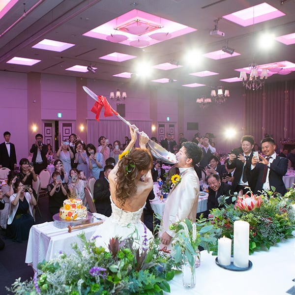 新婦さんが剣道をしていたこともあり竹刀でウェディングケーキ入刀