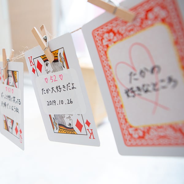 【トランプガーランド】52枚のトランプ1枚ずつに〝彼の好きなところ〟を書いて挙式前に彼にサプライズ