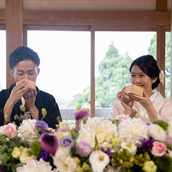 夫婦の絆を固める〝三々九度の盃〟