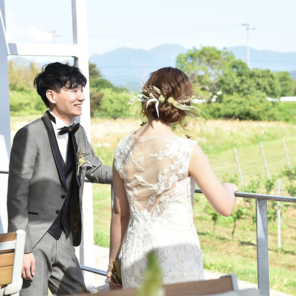 テラスからの眺めが最高!目の前にはぶどう畑が広がります