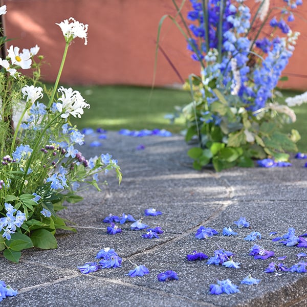 ガーデン人前式は会場全体の雰囲気に合わせて自然なお花を