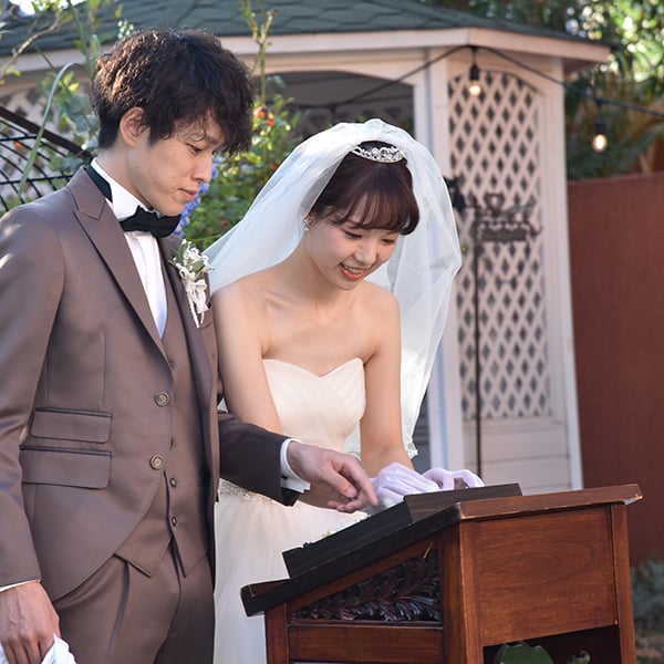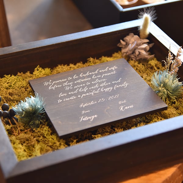最後におふたりのお花を入れて完成した〝世界にひとつの結婚証明書〟