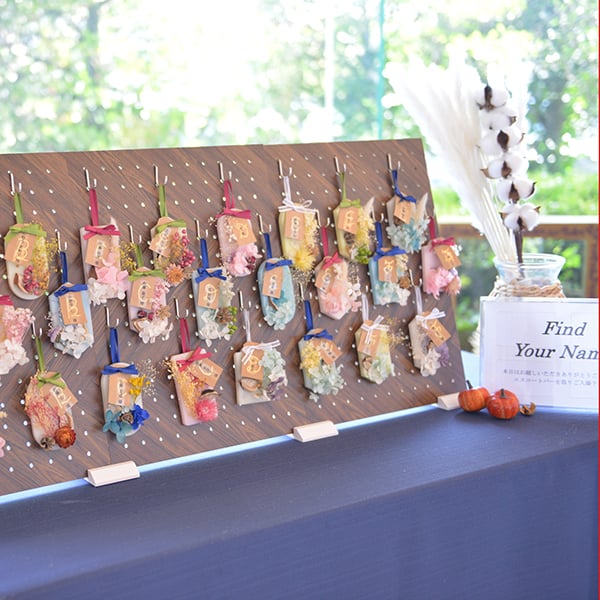エスコートカードならぬ手づくりの〝エスコートバー〟ひとつひとつ手づくりで想いが詰まっています