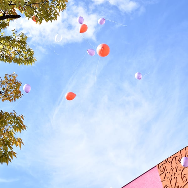 「おふたりの幸せが天まで届きますように」という願いを込めてバルーンリリース