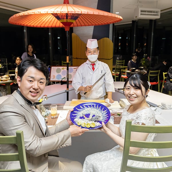 鶴模様のふぐ刺し 結婚式というおめでたい日に相応しい一皿