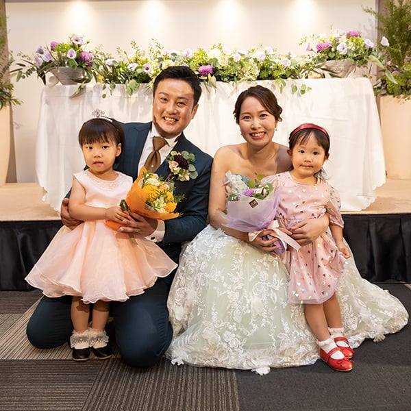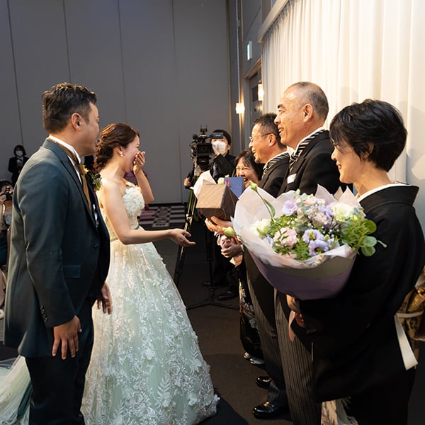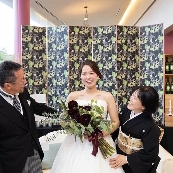 笑顔で両親に「ありがとう」を 新婦さんの笑顔に家族みんなも笑顔に