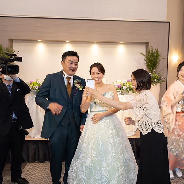 緊張もほぐれ、ゲストからの祝福に笑顔も