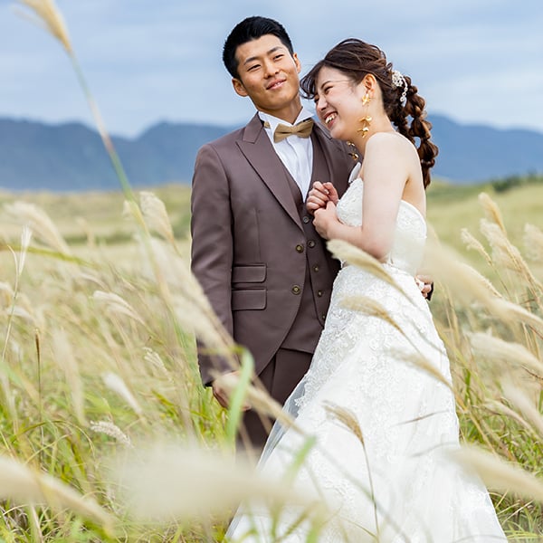 秋ならではのススキに囲まれたウェディングフォト
