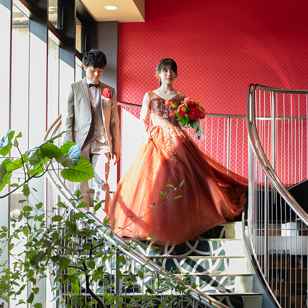 大階段から降りてくる姿も花嫁を感じられる1シーンです