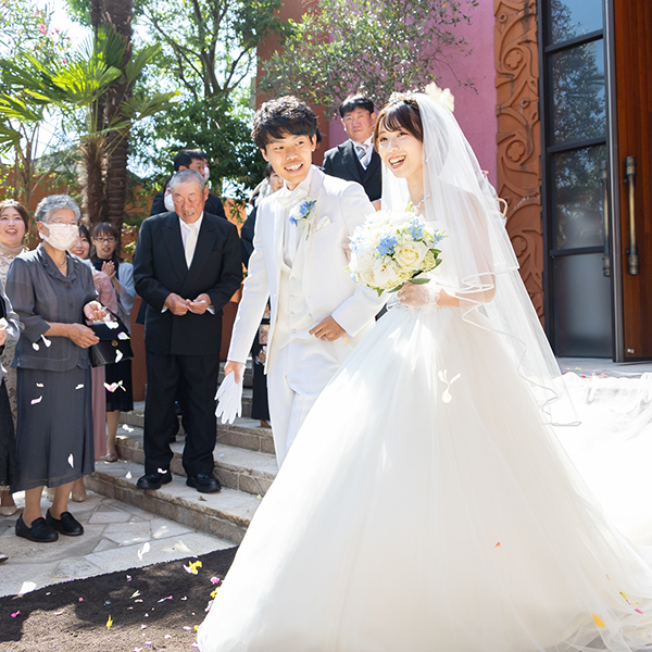 挙式の後はゲストの皆様からのフラワーシャワーを浴びながら