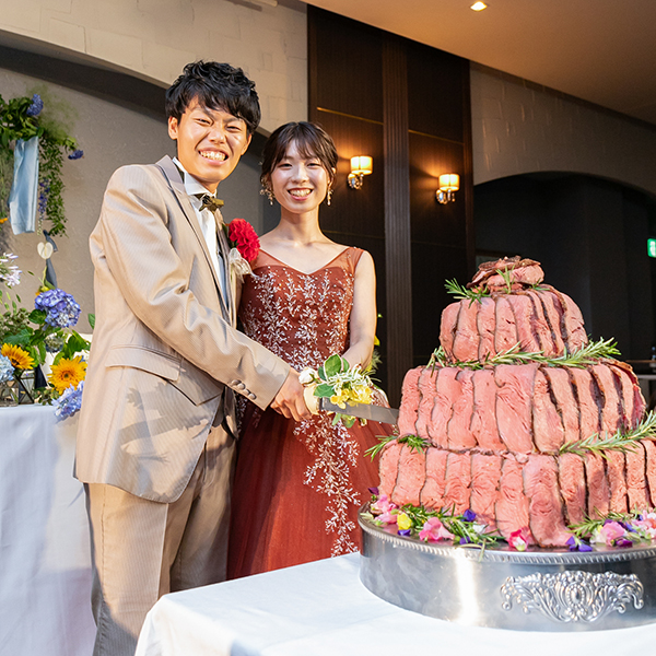 ウエディングケーキならぬローストビーフタワー!お肉を食べてパワーをとお二人からのおもてなしを込めて