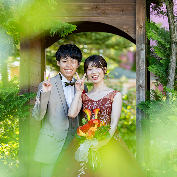 前撮りの人気ショット 木漏れ日が差し込む中で