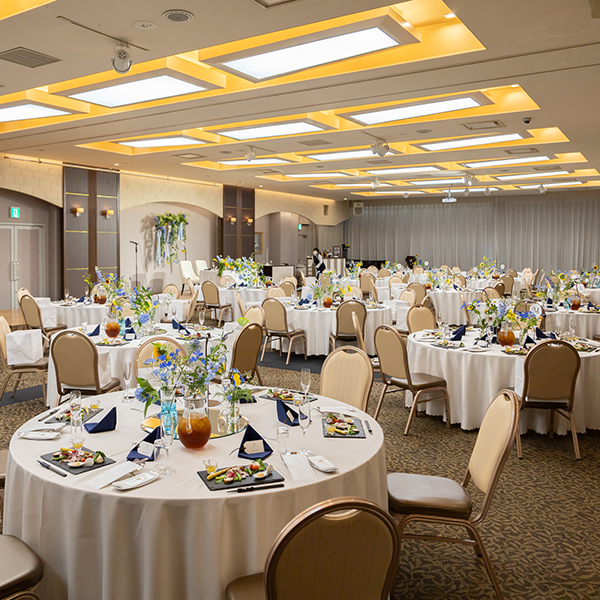 パーティー会場は人気のローズルーム BLUE&YELLOWをコンセプトカラーに