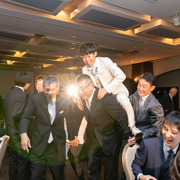 新郎はお世話になった恩師の皆様と 新郎も驚きの騎馬でご退場