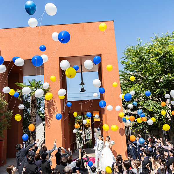 バルーンリリース 新郎が所属するチームのテーマカラーを取り入れました
