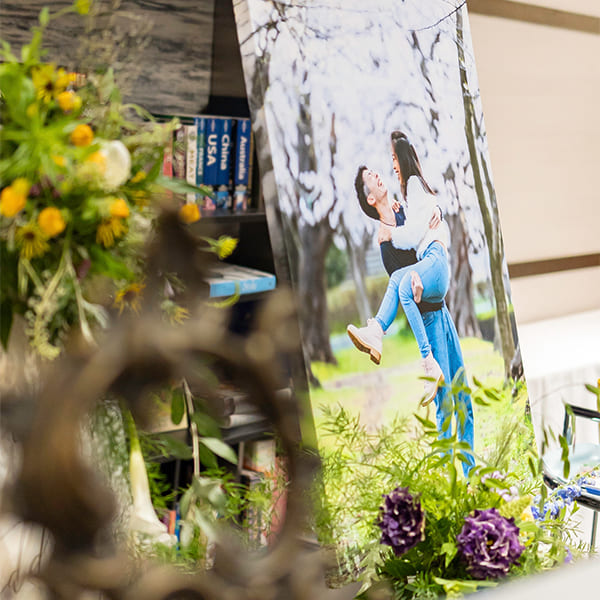 ウェルカムスペースには満開の桜で撮影したお気に入りの1枚を