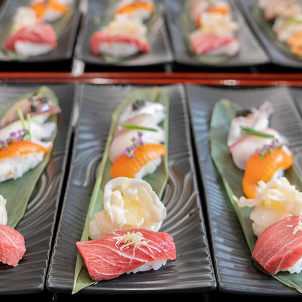 お寿司コーナーオープンと共に握りたてのお寿司をゲスト一人一人にサーブしました