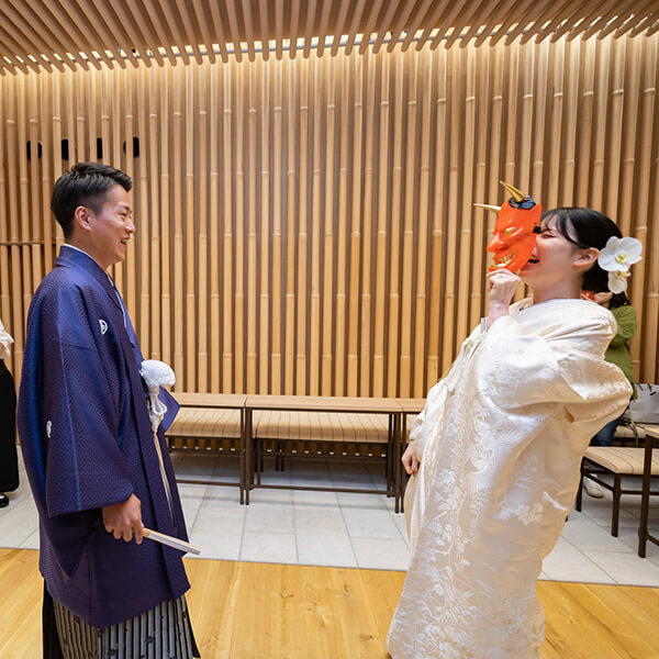 ファーストミートは鬼のお面で新郎へサプライズ!