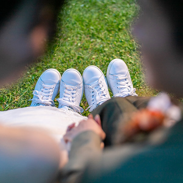 お揃いのシューズでアウトドアウェディングらしいフォトも