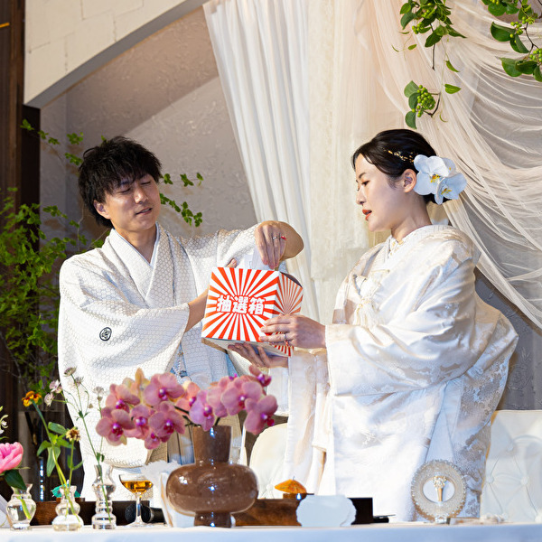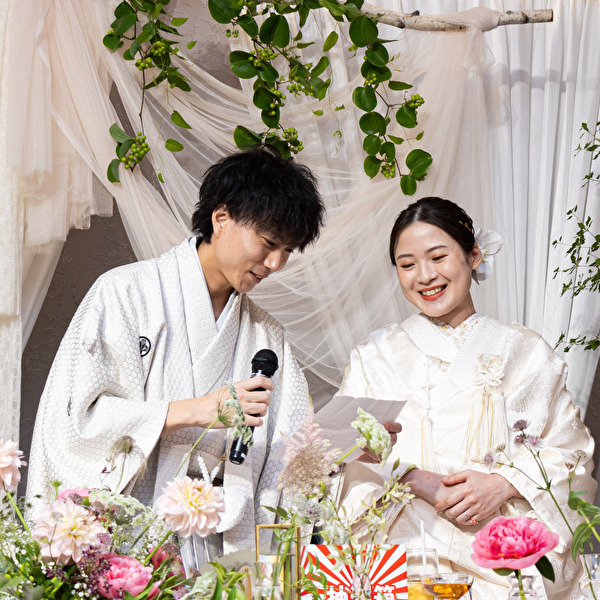 披露宴は白の紋服と白無垢でスタート!!