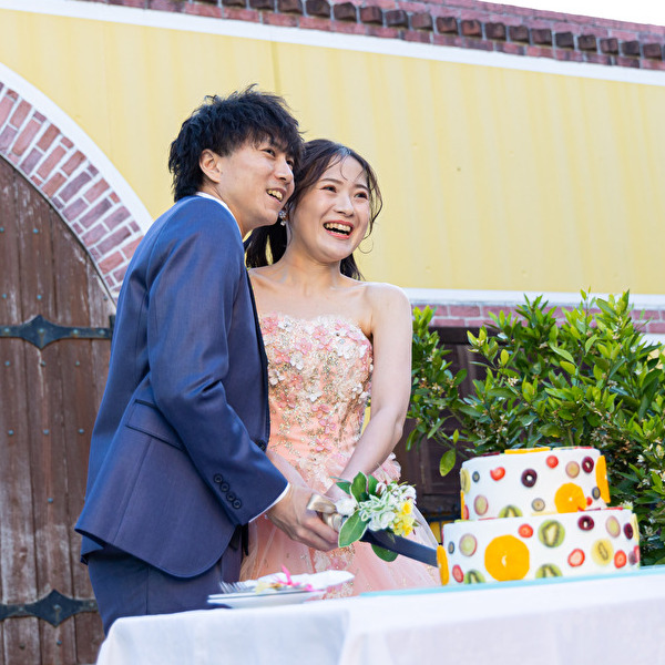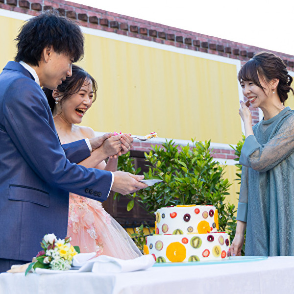 一番の見どころ「ケーキ入刀」はガーデンの青空の元で