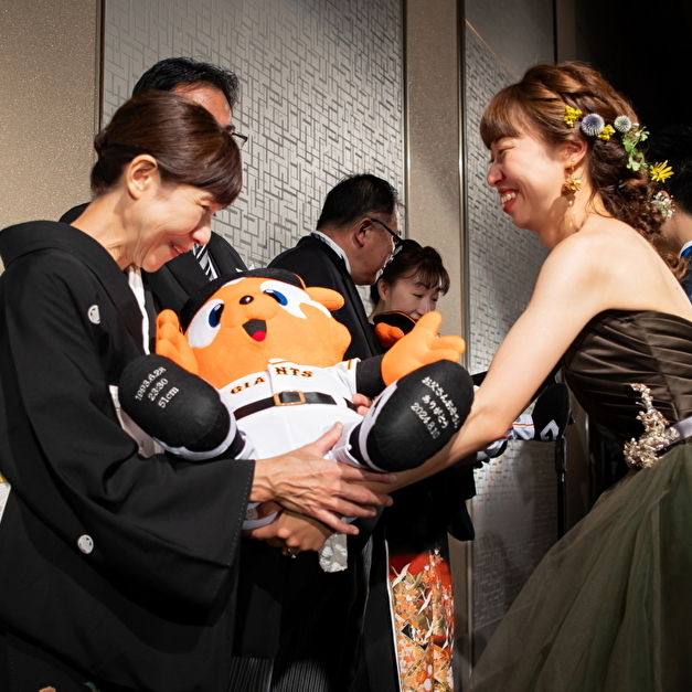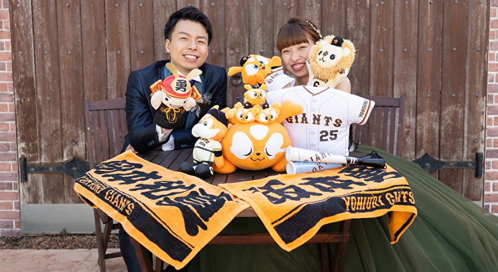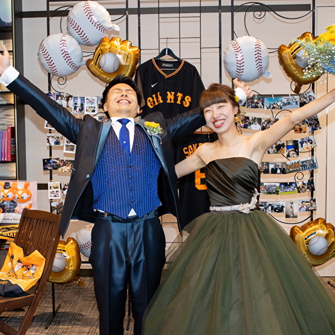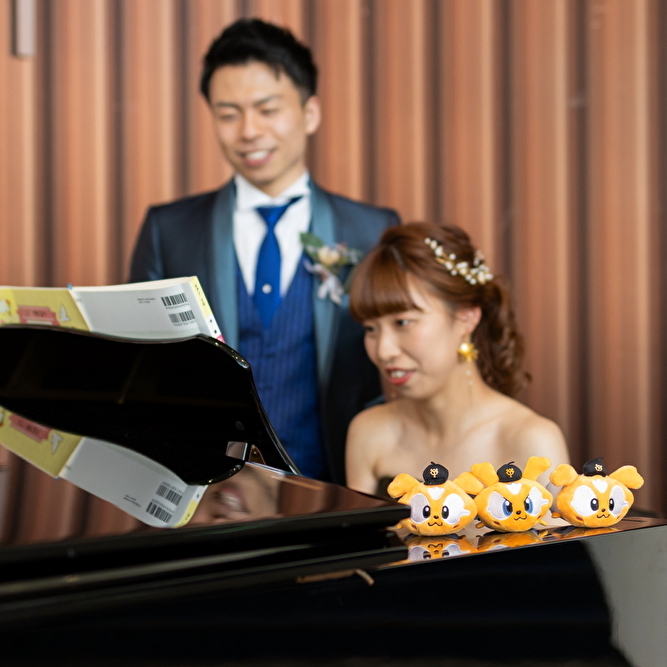 大好きな野球チームのグッツと新婦のピアノがコラボ!