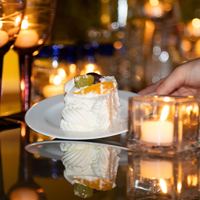 デザートビュッフェのコーナーは人気のナイトガーデンと共に