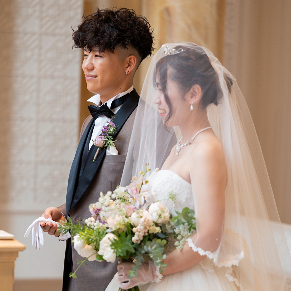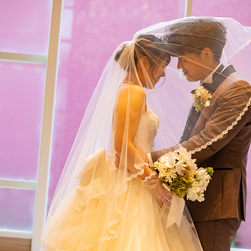 チャペル前撮りでベールを使った神秘的な1枚♡