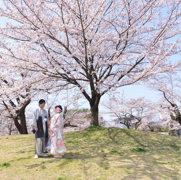 和装写真は桜の季節に。新聞に載ったことも良い記念です
