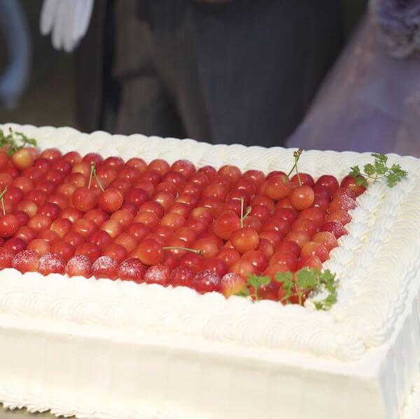旬のさくらんぼをふんだんに使ったケーキ さくらんぼは新郎の友人が大切に育ててくれたもの