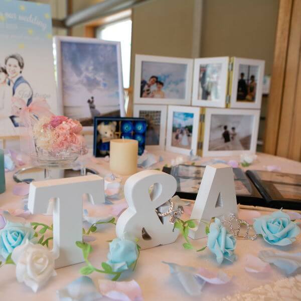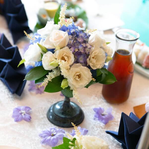 初夏ということで 白や青中心の涼しい色合いのテーブルコーディネート
