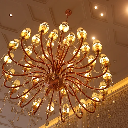 スケールの大きな内部の高い天井とシャンデリアが、お二人の感動のシーンを彩ります。